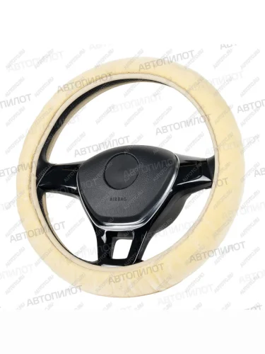 Оплётка на руль (37-40 см искусственный мех короткий ворс) Автопилот (бежевый) в Самаре Самарской области