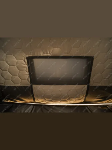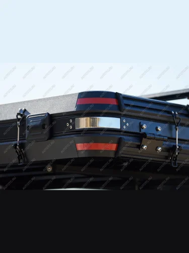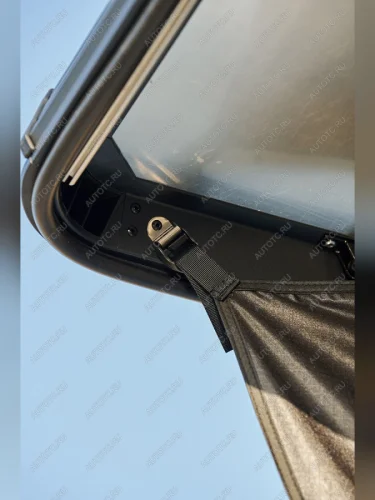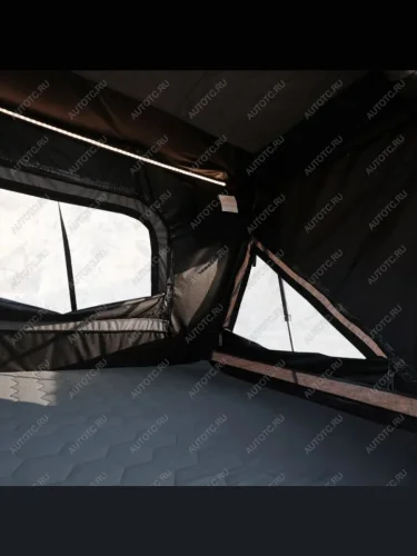 - Черная твердая оболочка защищает палатку от механических повреждений и минимизирует шум набегающего потока воздуха во время движения.