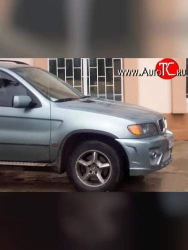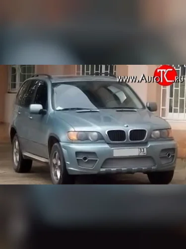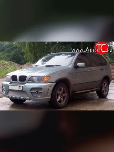 Первое, что сразу бросается в глаза – массивный воздухозаборник в форме перевёрнутой трапеции, который придаёт машине объёма и внушительности. Теперь глядя на автомобиль BMW X5 (1999-2003) E53 с новым передним бампером – сразу хочется уступить ему дорогу, потому как с таким новшеством он явно вызывает трепет и уважение. По бокам от воздухозаборника расположено по два воздуховода, разделённые небольшой перемычкой с посадочным местом под круглые противотуманные фары – этот дизайнерский ход позволил добиться полного эффекта спортивного автомобиля, а также придать ему ещё большей мускулистости.