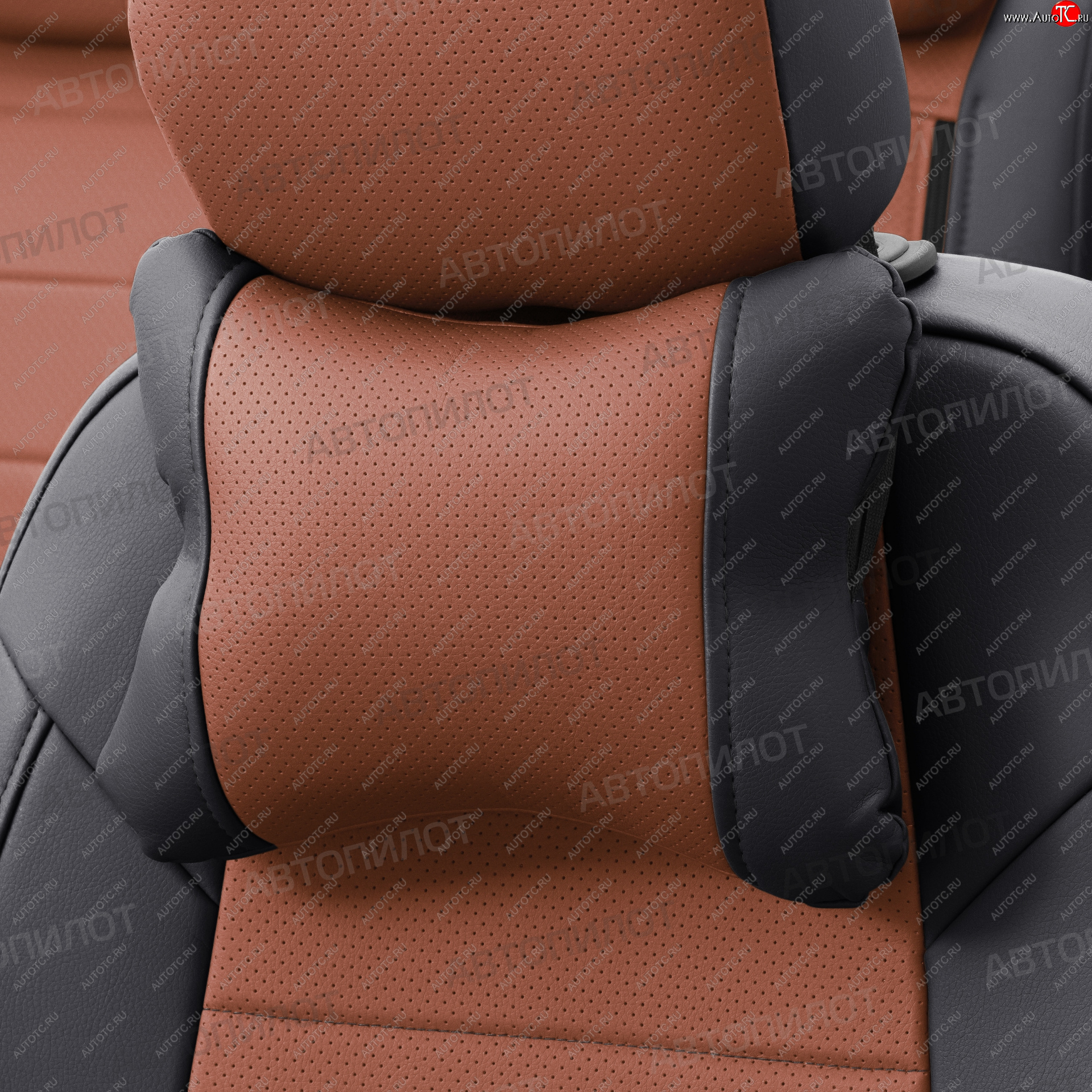Подушки под шею (экокожа, 2 шт.) Автопилот CLASSIC (черный/коричневый) в Самаре Самарской области