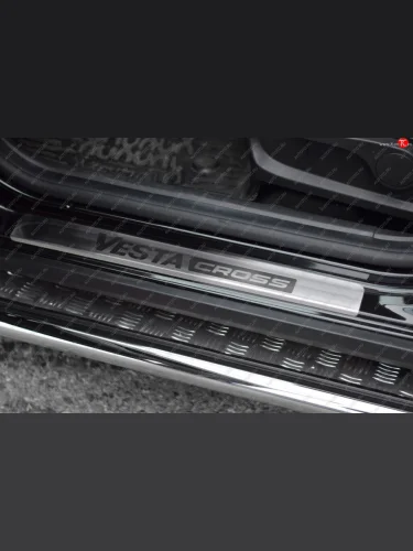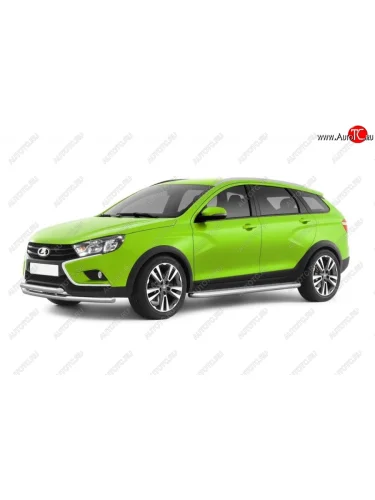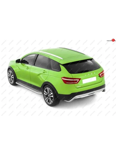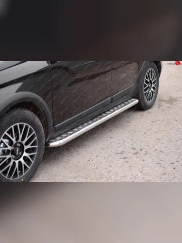 Порожки для ног из трубы Ø51 с алюминиевой площадкой Petroil Tuning Лада ВАЗ Веста (2017-2022) SW 2181 (Нержавеющая полированная сталь) в Самаре Самарской области