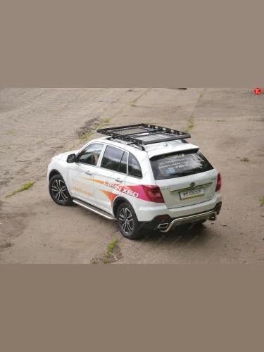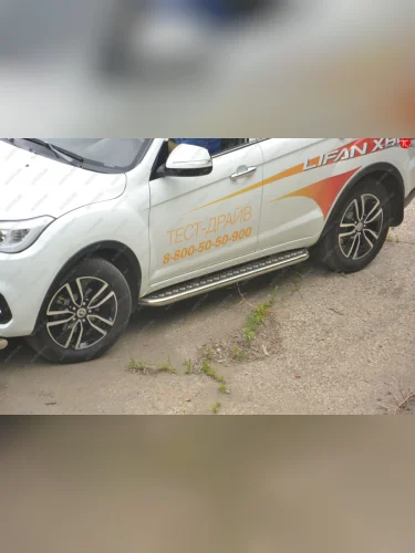 Порожки для ног из трубы Ø51 с алюминиевой площадкой Petroil Tuning Lifan X60 (2016-2025) (Нержавеющая полированная сталь) в Самаре Самарской области
