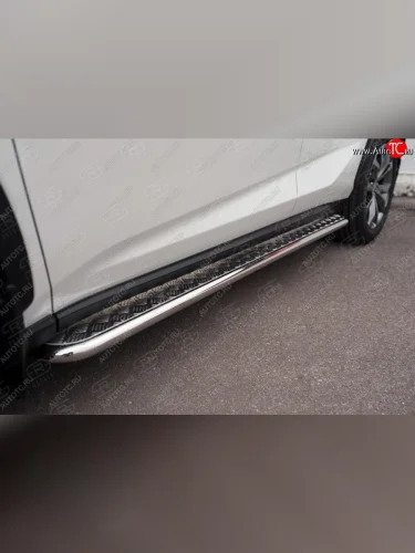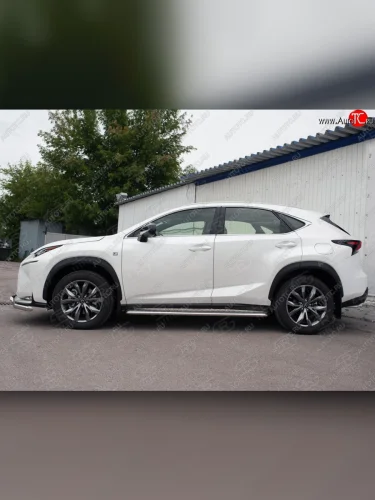 Порожки для ног (Ø42) SLITKOFF Lexus NX200 Z10 дорестайлинг (2014-2017) (лист - алюминий, профиль - нержавейка) в Самаре Самарской области