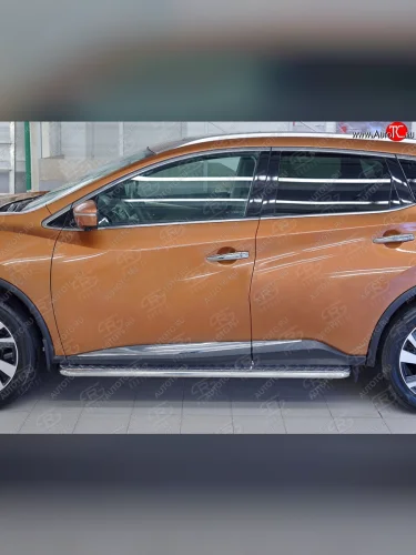 Порожки для ног (Ø42) SLITKOFF Nissan Murano 3 Z52 дорестайлинг (2015-2022) (лист - алюминий, профиль - нержавейка) в Самаре Самарской области