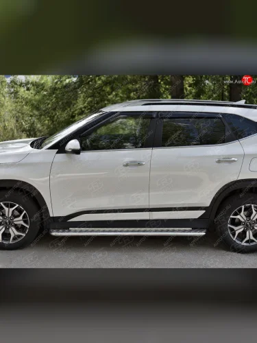 Порожки для ног SLITKOFF (Ø42 мм) KIA Seltos SP2 дорестайлинг (2019-2022) (Лист алюминиевый, труба - нержавейка) в Самаре Самарской области