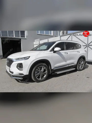 Пороги алюминиевые Slitkoff Hyundai Santa Fe TM дорестайлинг (2018-2021) (Standart Silver) в Самаре Самарской области