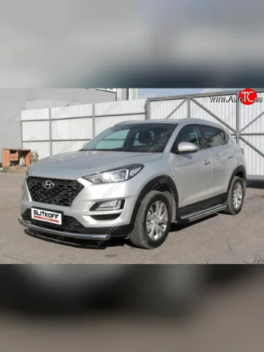 Пороги алюминиевые Slitkoff Hyundai Tucson (2018-2021) TL (Luxe Silver) в Самаре Самарской области