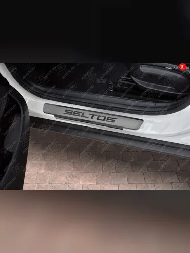 Пороги накладки Russtal KIA Seltos (2019-2025) (Нержавейка шлифованная с надписью) в Самаре Самарской области