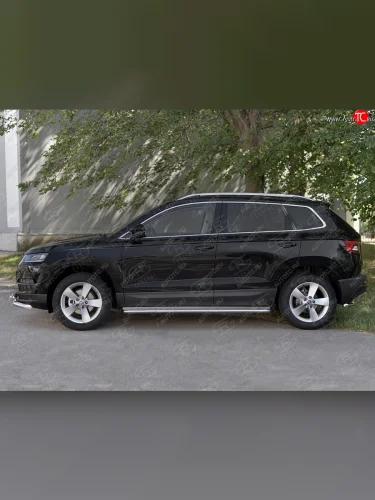 Пороги SLITKOFF d42 с листом Skoda Karoq (2017-2025) NU7 (лист нержавейка, труба нержавейка) в Самаре Самарской области