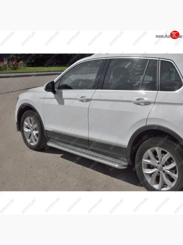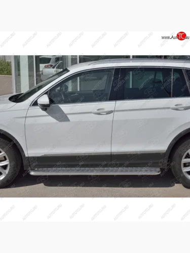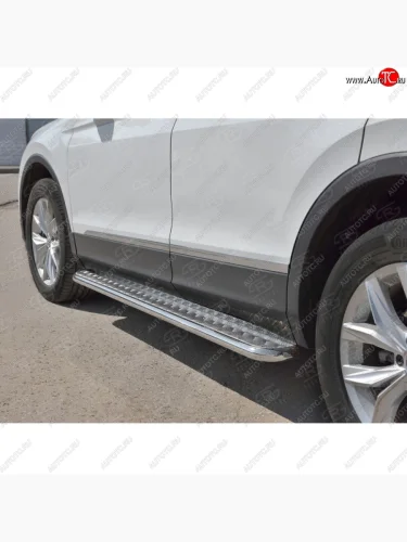 Пороги SLITKOFF труба d42 с листом (v1) Volkswagen Tiguan (2016-2020) Mk2 в Самаре Самарской области