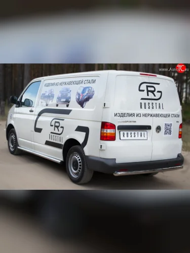 Правая защита порога SLITKOFF из круглой трубы диаметром 63 мм с заглушкой Volkswagen Transporter T5 дорестайлинг (2003-2009) в Самаре Самарской области