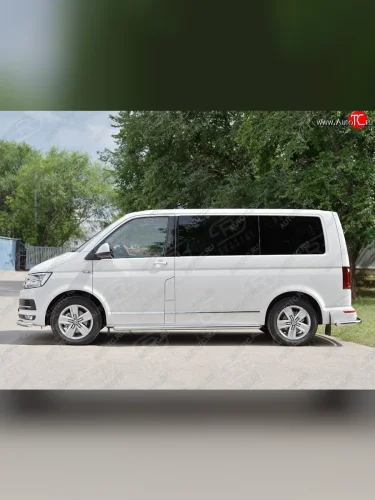 Правая защита порогов SLITKOFF из круглой трубы диаметром 63 мм v3 Volkswagen Caravelle T6 дорестайлинг (2015-2019) в Самаре Самарской области