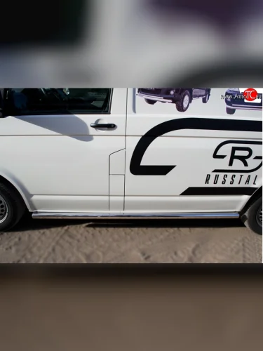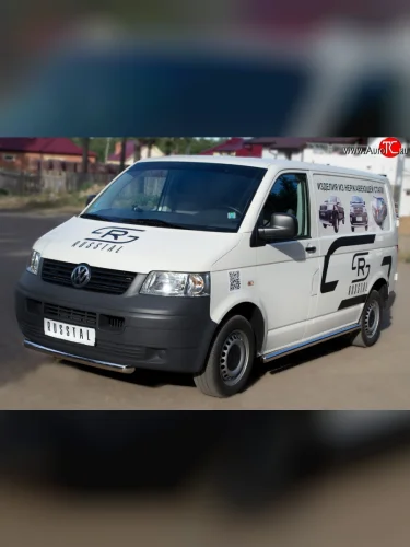 Правая защита порогов SLITKOFF из круглой трубы с закругленными торцами диаметром 63 мм Volkswagen Transporter T5 дорестайлинг (2003-2009) в Самаре Самарской области