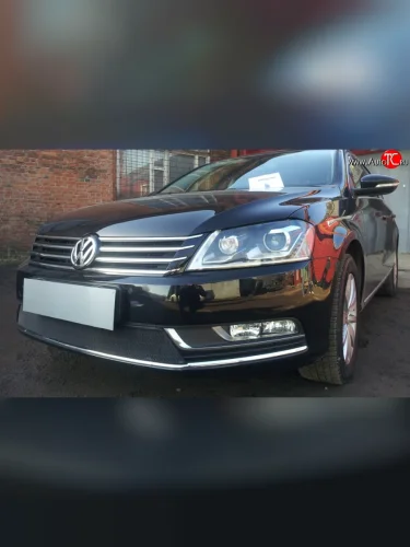Сетка на бампер Russtal (черная) Volkswagen Passat (2010-2015) B7 в Самаре Самарской области