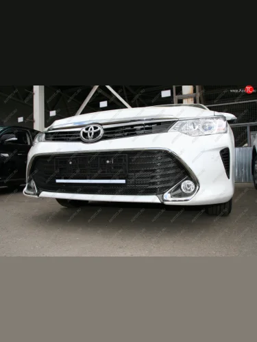 Сетка на бампер внешняя Arbori Toyota Camry XV55 1-ый рестайлинг (2014-2017) (Черная 15 мм) в Самаре Самарской области