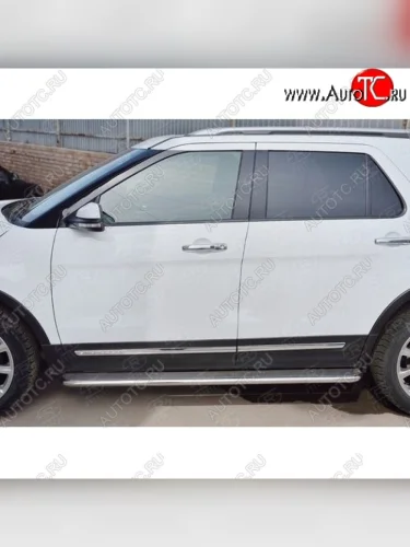 Широкая защита порогов с трубой d42 мм с нержавеющим листом SLITKOFF v3 Ford Explorer U502 2-ой рестайлинг, 5 дв. (2017-2019) в Самаре Самарской области