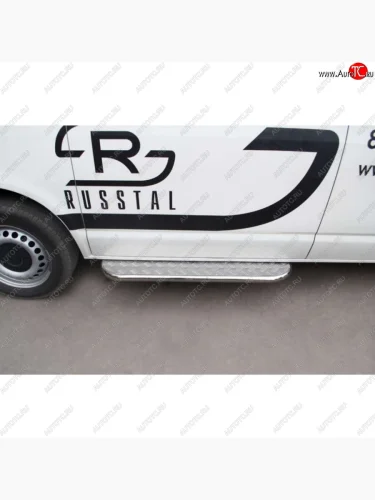 Широкая защита порогов с трубой d42 мм SLITKOFF v2 Volkswagen Transporter T5 дорестайлинг (2003-2009) в Самаре Самарской области