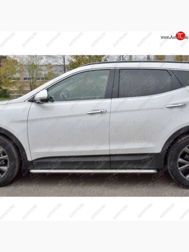 Широкая защита порогов с трубой диаметром 42 мм PREMIUM SLITKOFF v2 Hyundai Santa Fe DM рестайлинг (2015-2019) в Самаре Самарской области