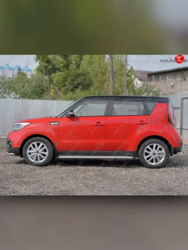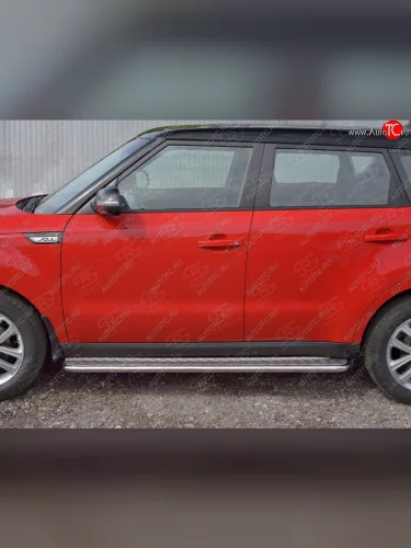 Широкая защита порогов с трубой диаметром 42 мм SLITKOFF v2 KIA Soul PS дорестайлинг (2014-2016) в Самаре Самарской области