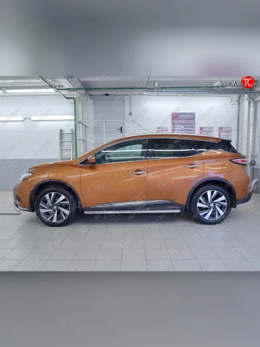 Широкая защита порогов с трубой диаметром 42 мм SLITKOFF v2 Nissan Murano 3 Z52 дорестайлинг (2015-2022) в Самаре Самарской области