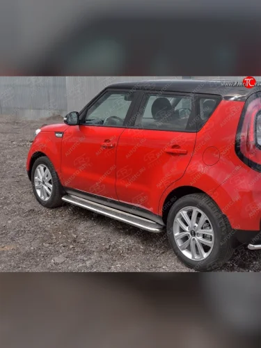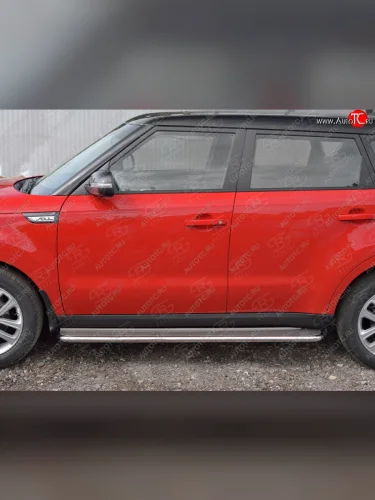 Широкая защита порогов с трубой диаметром 42 мм SLITKOFF v3 KIA Soul PS дорестайлинг (2014-2016) в Самаре Самарской области