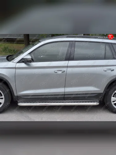Широкая защита порогов с трубой диаметром 63 мм SLITKOFF v1 Skoda Kodiaq 1 NS7 дорестайлинг (2017-2021) в Самаре Самарской области