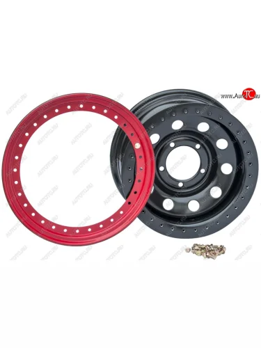 Штампованый диск OFF-ROAD Wheels (стальной усиленный с бедлоком, круг - черный/красный). 10.0 x 15 в Самаре Самарской области