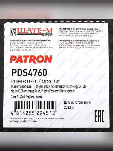 | Наименование | Вал привода VW Golf (05-08) SKODA Octavia (04-08) передний левый PATRON PATRON pds4760 в Самаре Самарской области |