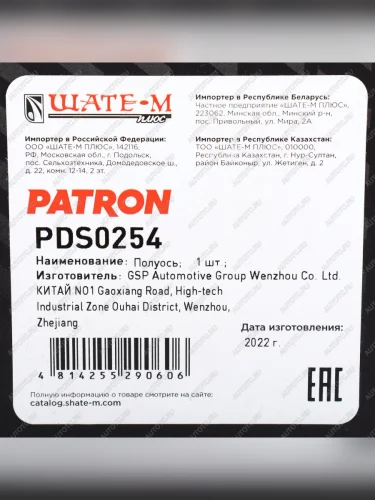 | Наименование | Вал привода VW Golf (05-),Passat (06-) передний правый PATRON PATRON pds0254 в Самаре Самарской области |
