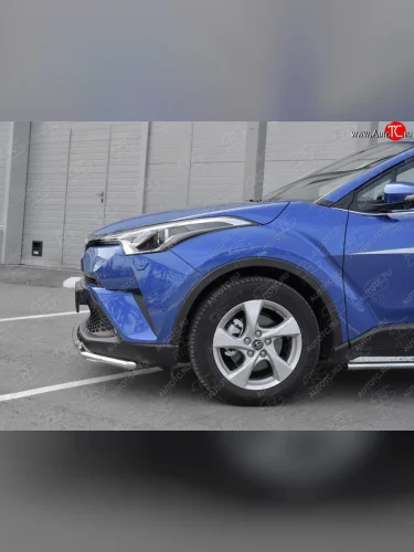 Защита переднего бампера (2 трубы Ø42 мм, нержавейка) SLITKOFF Toyota C-HR (2016-2019) NGX10, ZGX10 в Самаре Самарской области