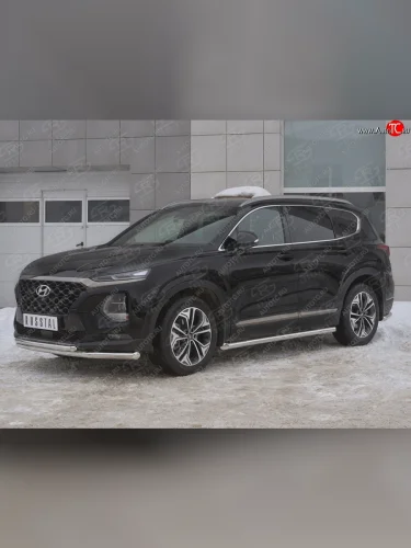 Защита переднего бампера (2 трубы Ø63 и 42 мм, нержавейка) SLITKOFF Hyundai Santa Fe (2018-2021) TM в Самаре Самарской области