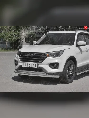 Защита переднего бампера (2 трубы Ø63 и 42 мм, нержавейка) SLITKOFF Lifan X70 (2018-2025) в Самаре Самарской области
