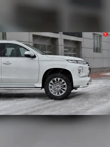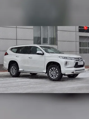 Защита переднего бампера (2 трубы Ø63 и 42 мм, нержавейка) SLITKOFF Mitsubishi Pajero Sport QF рестайлинг (2019-2022) в Самаре Самарской области