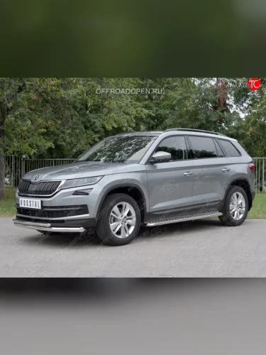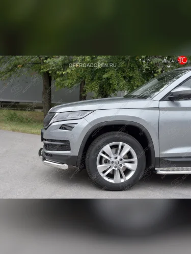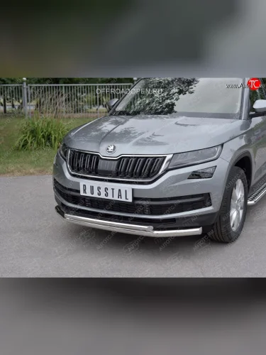 Защита переднего бампера (2 трубы Ø63 и 42 мм, нержавейка) SLITKOFF Skoda Kodiaq (2017-2021) 1 NS7 в Самаре Самарской области