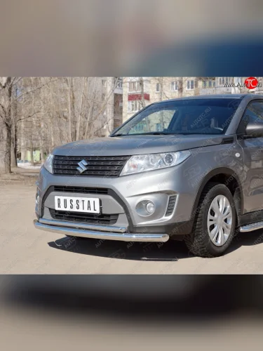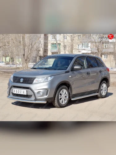 Защита переднего бампера (2 трубы Ø63 и 42 мм, нержавейка) SLITKOFF Suzuki Vitara LY дорестайлинг (2015-2019) в Самаре Самарской области