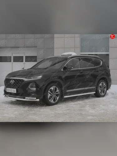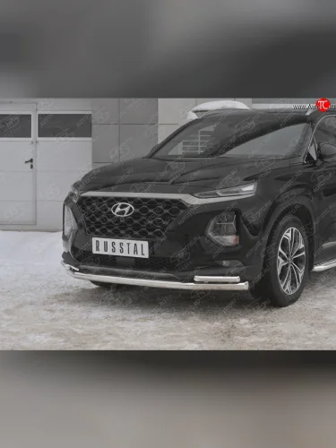 Защита переднего бампера (2 трубы Ø63 и 42 мм (углы), нержавейка) SLITKOFF Hyundai Santa Fe (2018-2021) TM в Самаре Самарской области