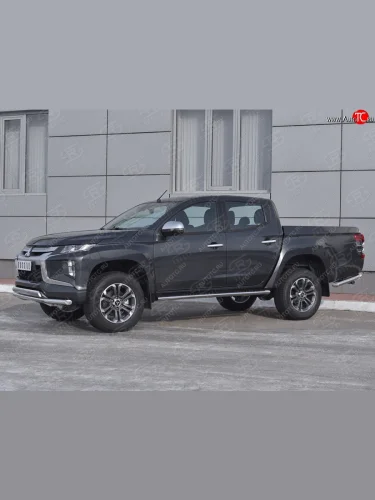 Защита переднего бампера (2 трубы Ø63 и 75х42 мм, нержавейка) Russtal Mitsubishi L200 5 KK,KL рестайлинг (2018-2022) в Самаре Самарской области
