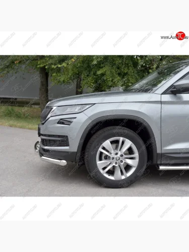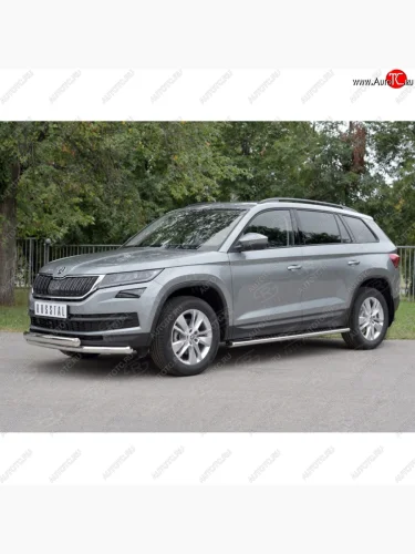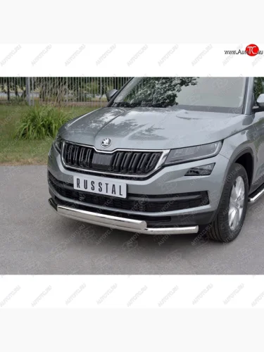 Защита переднего бампера (2 трубы Ø63 и 75х42 мм, нержавейка) Russtal Skoda Kodiaq 1 NS7 дорестайлинг (2017-2021) в Самаре Самарской области