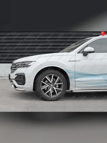 Защита переднего бампера (2 трубы Ø63 и 75х42 мм, нержавейка) SLITKOFF Volkswagen Touareg (2018-2022) 3 CR в Самаре Самарской области