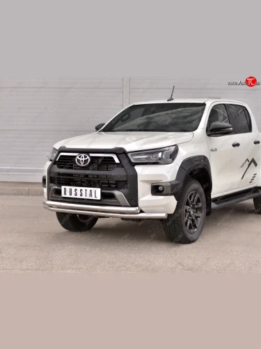 Защита переднего бампера (2 трубы Ø63 мм, нержавейка, BLACK ONYX) SLITKOFF Toyota Hilux (2020-2025) AN120 в Самаре Самарской области