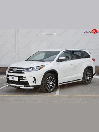 Защита переднего бампера (2 трубы Ø63 мм, нержавейка) SLITKOFF Toyota Highlander (2013-2017) XU50 в Самаре Самарской области