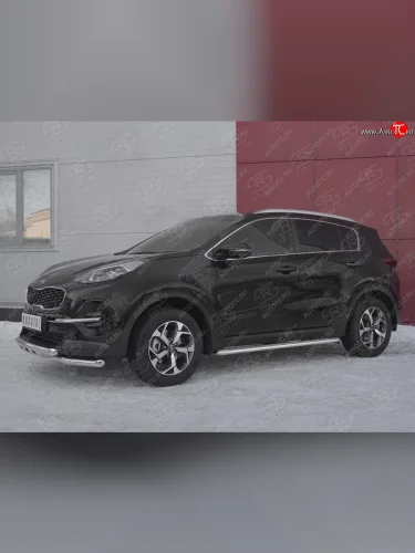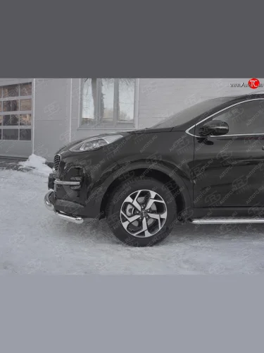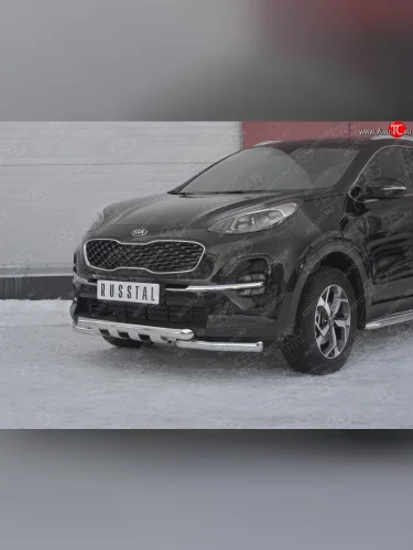 Защита переднего бампера (2 трубы Ø63 мм с клыками, нержавейка) SLITKOFF KIA Sportage (2018-2022) 4 QL в Самаре Самарской области