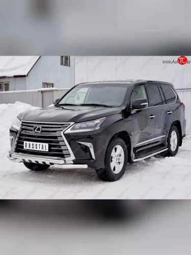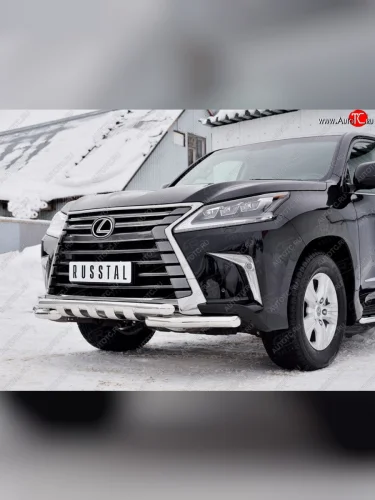 Защита переднего бампера (2 трубы Ø63 мм с зубами, нержавейка) SLITKOFF Lexus LX450d (2015-2022) J200 в Самаре Самарской области