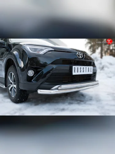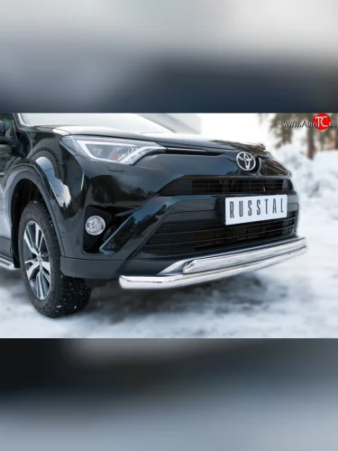 Защита переднего бампера (2 трубыØ75х42 и 63 мм, нержавейка) Russtal Toyota RAV4 XA40 5 дв. рестайлинг (2015-2019) в Самаре Самарской области