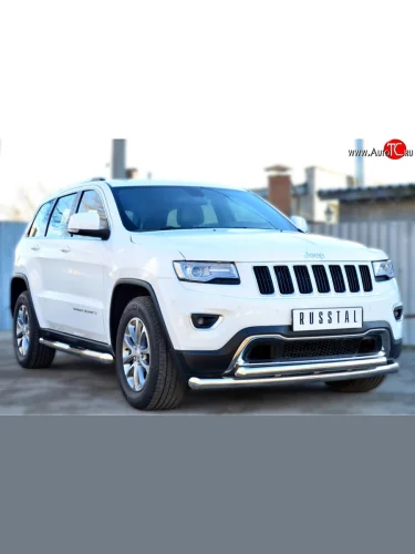 Защита переднего бампера (2 трубыØ76 и 63 мм, нержавейка) SLITKOFF Jeep Grand Cherokee (2013-2018) WK2 в Самаре Самарской области