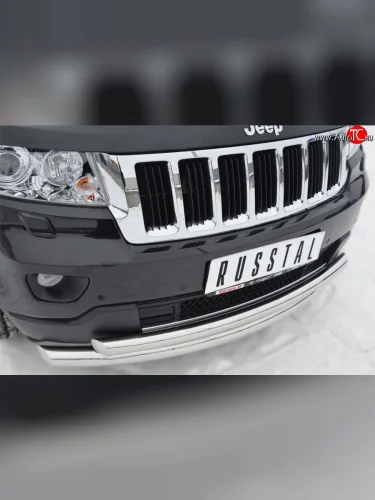 Защита переднего бампера (2 трубыØ76 и 63 мм, нержавейка) SLITKOFF Jeep Grand Cherokee (2010-2013) WK2 в Самаре Самарской области