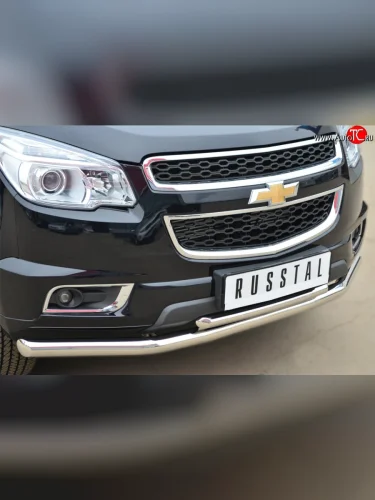 Защита переднего бампера (2 трубыØ63 и 42 мм, нержавейка) SLITKOFF Chevrolet Trailblazer (2012-2016) GM800 в Самаре Самарской области