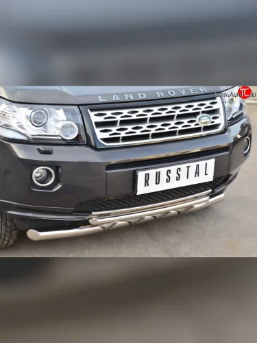 Защита переднего бампера (2 трубыØ63 и 42 мм, нержавейка) SLITKOFF Land Rover Freelander L359 дорестайлинг (2006-2010) в Самаре Самарской области