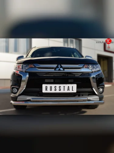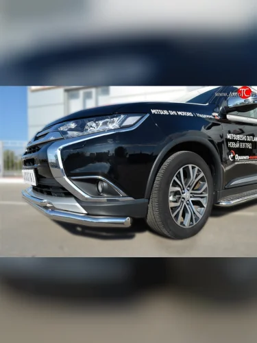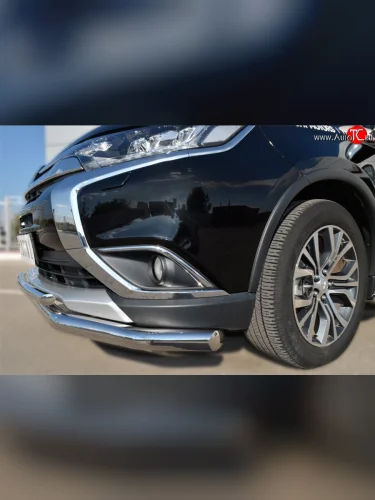 Защита переднего бампера (2 трубыØ63 и 42 мм, нержавейка) SLITKOFF Mitsubishi Outlander GF 2-ой рестайлинг (2015-2018) в Самаре Самарской области