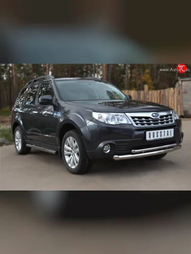 Защита переднего бампера (2 трубыØ63 и 42 мм, нержавейка) SLITKOFF Subaru Forester SH (2008-2013) в Самаре Самарской области